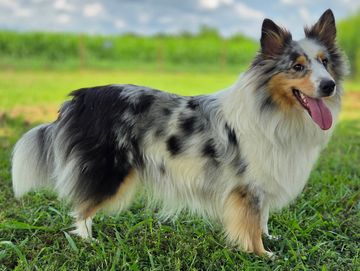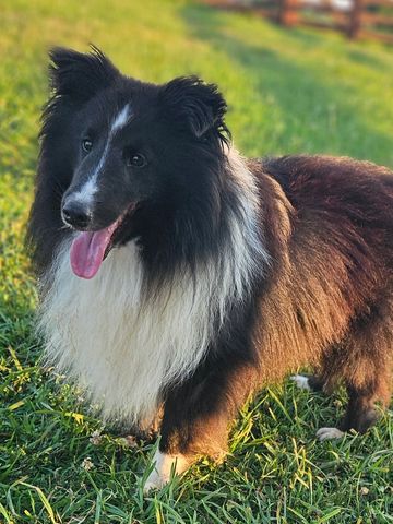Gabe is a tricolor who came from our breeding. He is the son of Evangeline and Landon and is everything I could have asked for in a sheltie stud. He is a true gentleman and great ESA, being both sweet and attentive. His puppies offer the same happiness and comfort that he offers me! He will fully take over for his dad one day.